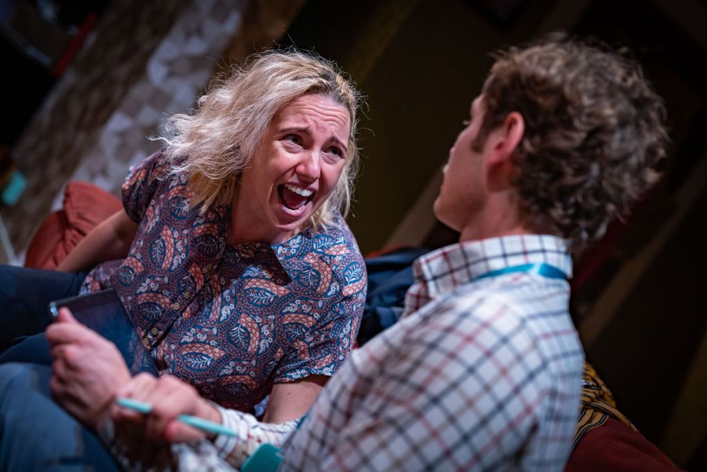 Presenting herself on her worst day, Chris (Gillian Dean) quickly messes up the flat and scrubs off her make-up in an attempt to prove to Ralph that she isn’t fit for work, hating the lengths she has to go to in order to be believed about the excruciating pain she experiences daily. Ralph (Neil John Gibson) is a huge advocate of the new system, robotic like in his exclamations of positive reinforcements about the process, smugly and blanketly repeating “we listened to your feedback” to any of the obstacles that Chris highlights as potential issues – proving her point that disabilities are all lumped under the same umbrella, rather than each individual case being taken into consideration. He flags the potentials of people trying to ‘game the system’ and keenly takes note as her Able device mentions she’s moving 15% slower than she normally does.