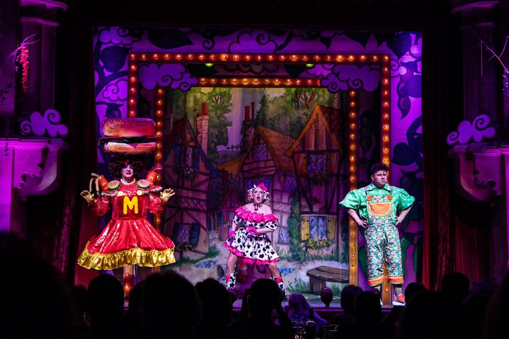 Pantomime is a Winter staple, with well-known children’s book stories getting a revamp – and, as you guessed by the title of the show, Jack and his Giant Stalk, Brick Lane Music Halls adult panto is no different. Jack Trott (Josh Benson) and his best friend Daisy the Cow (Lucy Reed) have always had a close bond, growing even stronger when Spirit of the Beans (Jack Pallister) uses his magical fairy powers to give her a voice, transforming her into a Cow-reoke star. When evil villains Ophelia Loosebottom (Hayley-Jo Whitney) and Poison Ivy (Charlotte Page) find out, they are desperate to get their hands on Daisy, or at the very least, the mountains of cash she’s generating for the Trott family. Can Jack, girlfriend Jill (Samantha McNeil), brother Willy (Vincent Hayes MBE) his mum Dame Fanny Trott (Andrew Robley) save the day and bring harmony back to Loosebottom?!